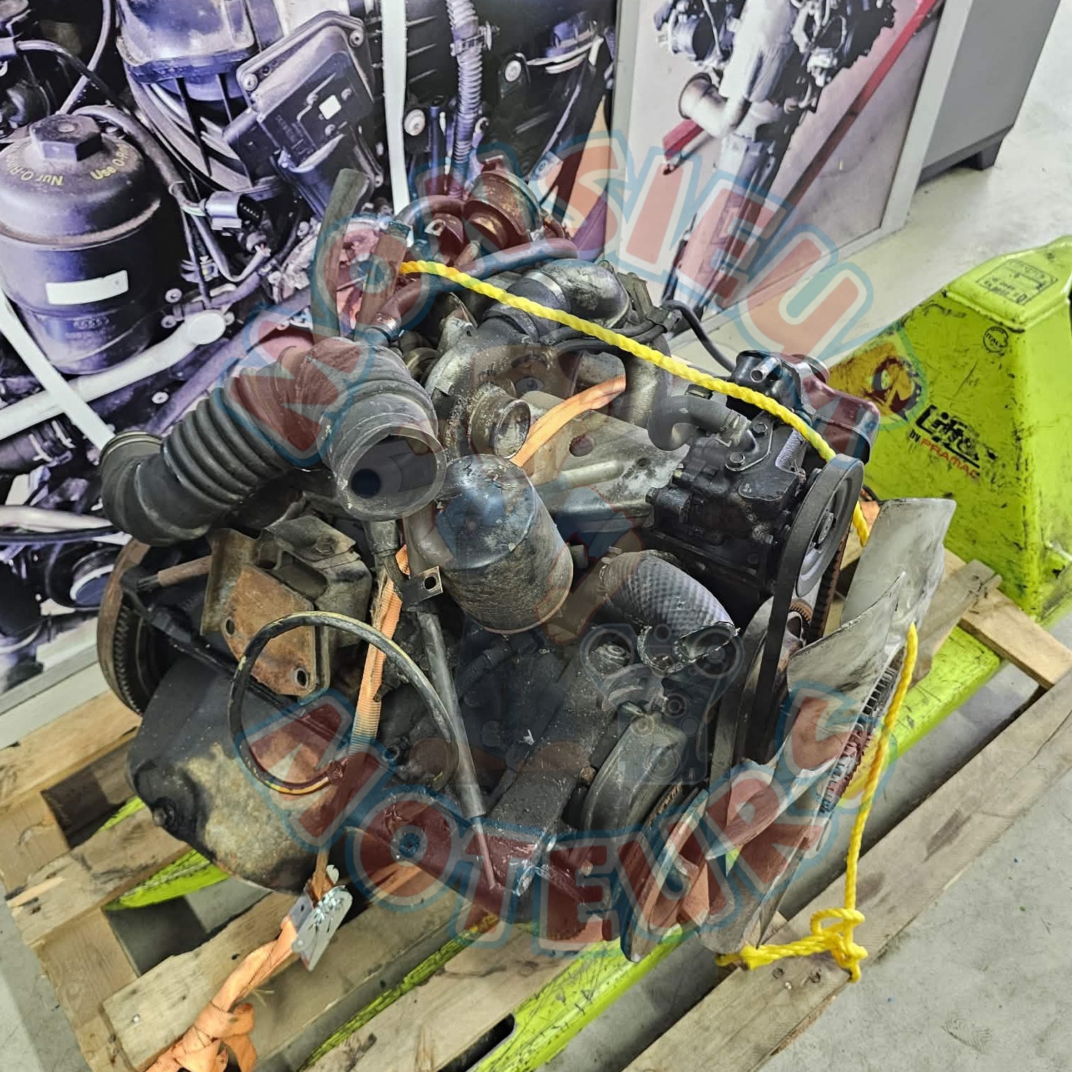 Motor Mitsubishi L200 2.5 TD de 1997, referência 4D56. Motor completo com injeção e turbo.